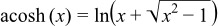template<class T> calculated-result-type acosh(const T x); template<class T, class Policy> calculated-result-type acosh(const T x, const Policy&);