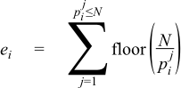 Where pi is the i'th prime number, and ei is a small positive integer or zero, which can be calculated via:
