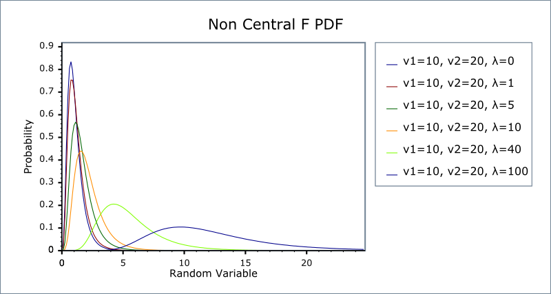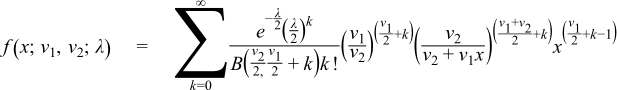 Refer to, Weisstein, Eric W. "Noncentral F-Distribution." From MathWorld--A Wolfram Web Resource. |
