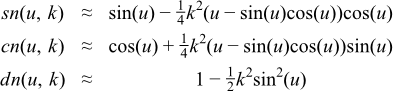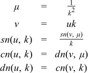 sn(u, 0) = sin(u), cn(u, 0) = cos(u) and dn(u, 0) = 1.