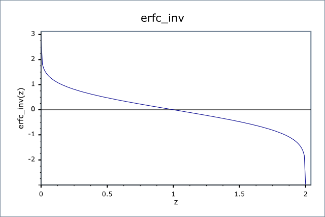 Returns the inverse of the complement of the error function of z, that is a value x such that: