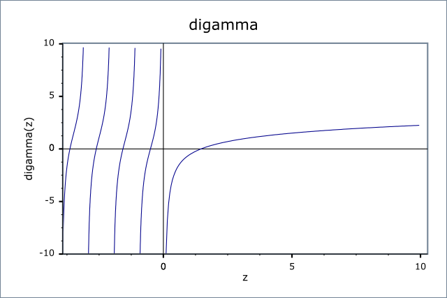 First a high precision approximation to digamma was constructed using a 60-term differentiated Lanczos approximation, the form used is: