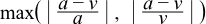 Given an actual value a and a found value v the relative error can be calculated from: