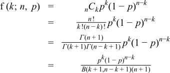 p = I[sub 1-p](n - k, k + 1) = 1 - I[sub p](k + 1, n - k) = ibetac(k + 1, n - k, p)