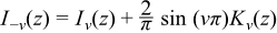 The solutions are known as the modified Bessel functions of the first and second kind (or occasionally as the hyperbolic Bessel functions of the first and second kind). They are denoted Iv and Kv respectively: