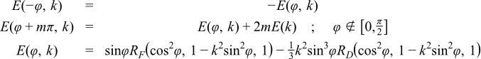These two functions evaluate the incomplete elliptic integral of the second kind E(φ, k) and its complete counterpart E(k) = E(π/2, k).