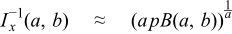 The final case to be considered if when one of a and b is less than or equal to 1, and the other greater that 1. Here, if b < a we swap a for b, p for q and x for y. Now the curve of the incomplete beta is convex with no points of inflection in [0,1]. For small p, x can be estimated using