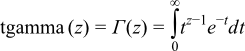 Returns the "true gamma" (hence name tgamma) of value z: