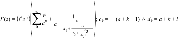 For z in the range -20 < z < 1 then recursion is used to shift to z > 1 via: