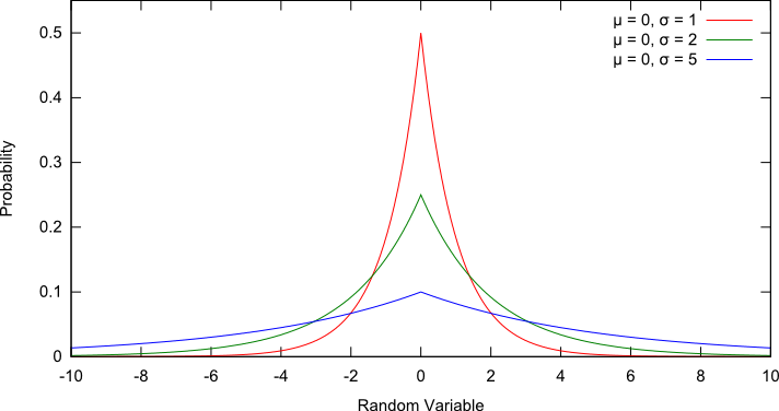 Using the relation: pdf = e-abs(x-μ) / σ / (2 * σ) |