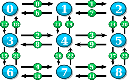 Figure 3: 3x3 unwrapped grid_graph with vertex and edge indices shown.