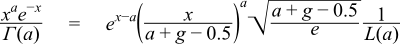 For the normalised incomplete gamma functions, calculation of the leading power terms is central to the accuracy of the function. For smallish a and x combining the power terms with the Lanczos approximation gives the greatest accuracy: