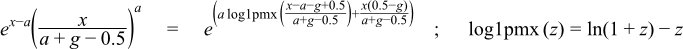 when a-x is small and a and x are large. There is still a subtraction and therefore some cancellation errors - but the terms are small so the absolute error will be small - and it is absolute rather than relative error that counts in the argument to the exp function. Note that for sufficiently large a and x the errors will still get you eventually, although this does delay the inevitable much longer than other methods. Use of log(1+x)-x here is inspired by Temme (see references below).
