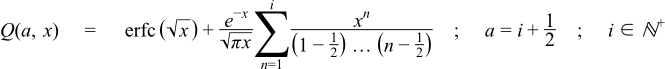 There are two special cases used when a is an integer or half integer, and the crossover conditions listed above indicate that we should compute the upper integral Q. If a is an integer in the range 1 <= a < 30 then the following finite sum is used: