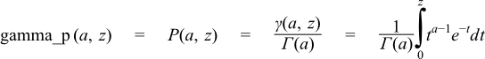 template <class T1, class T2> calculated-result-type gamma_p(T1 a, T2 z); template <class T1, class T2, class Policy> calculated-result-type gamma_p(T1 a, T2 z, const Policy&);