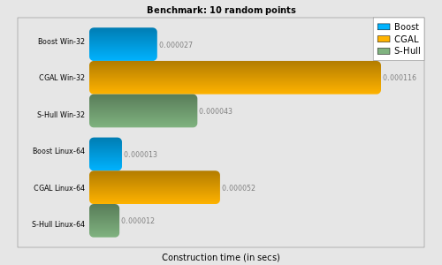 - Boost.Polygon Voronoi of points is 4 times faster for small