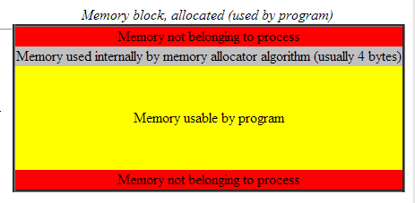 Review the concepts section if you are not already familiar with it. Remember that block is a contiguous section of memory, which is partitioned or segregated into fixed-size chunks. These chunks are what are allocated and deallocated by the user.