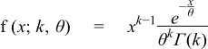 For shape parameter k and scale parameter θ it is defined by the probability density function: