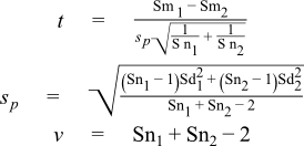 Our procedure will begin by calculating the t-statistic, assuming equal variances the needed formulae are: