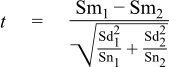 Now that we have the simple case out of the way, let's look for a moment at the more complex one: that the standard deviations of the two samples are not equal. In this case the formula for the t-statistic becomes: