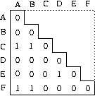 vertex set: A B C D E F edge set: (C,A) (C,B) (E,D) (F,A) (F,B) incident edges: A <--> C F B <--> C F C <--> A B D <--> E E <--> D F <--> A B