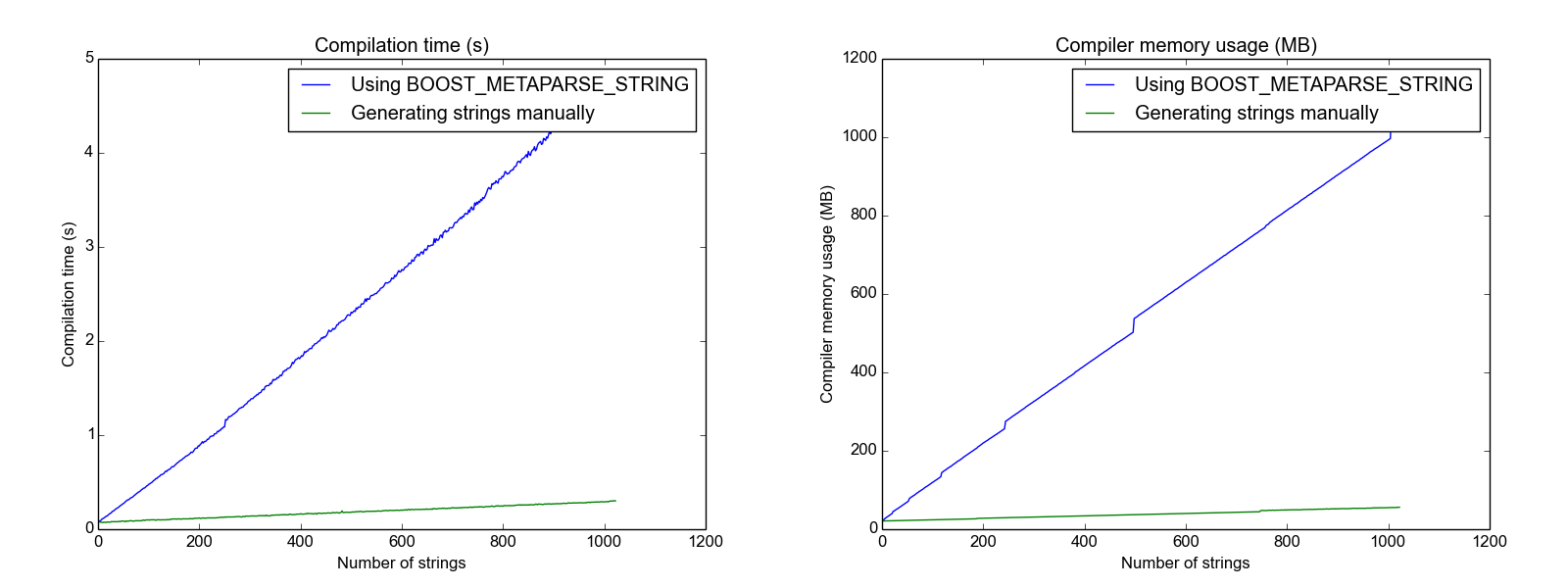 Measurements related to the performance of the BOOST_METAPARSE_STRING macro.