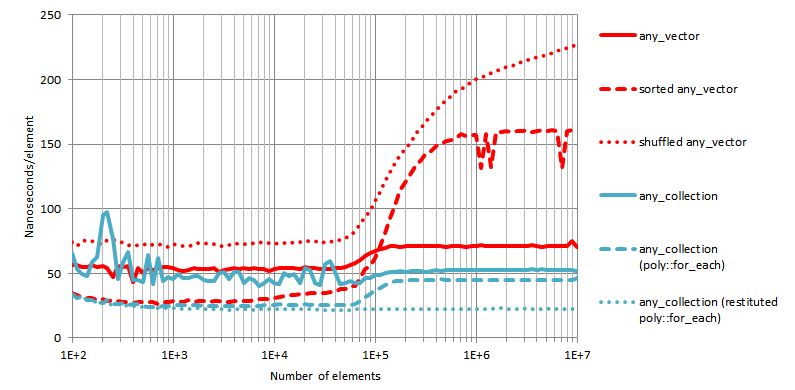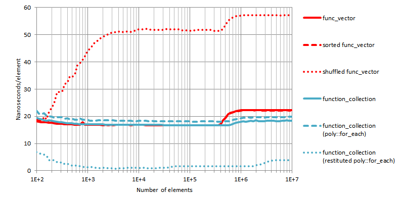 We ran tests to measure the performance of the containers of Boost.PolyCollection in two scenarios: