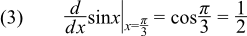 derivative of sin(x) evaluated at x =
