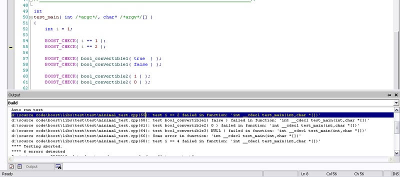 Note that both report level and result code are suppressed. This way the only output you may see from this command are possible runtime errors. But the best part is that you could jump through these errors using usual keyboard shortcuts/mouse clicks you use for compilation error analysis: