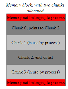 Review the concepts section if you are not already familiar with it. Remember that block is a contiguous section of memory, which is partitioned or segregated into fixed-size chunks. These chunks are what are allocated and deallocated by the user.