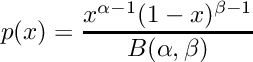 The beta distribution is a real-valued distribution which produces values in the range [0, 1]. It has two parameters, alpha and beta.