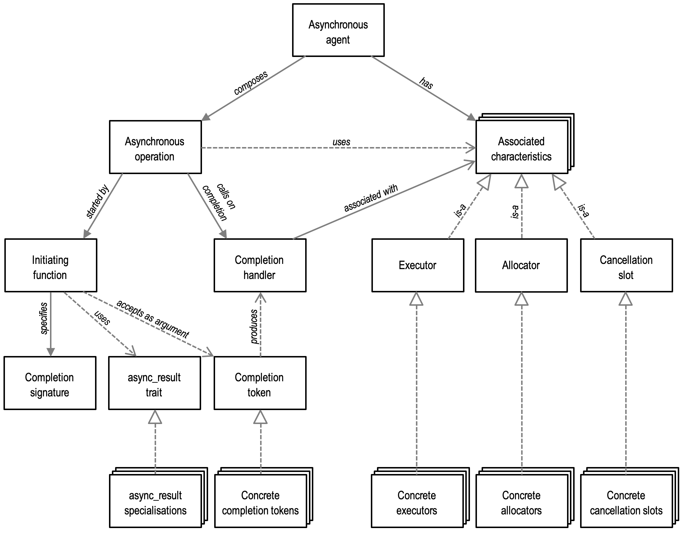 The asynchronous model presented in this section provides a basis for defining higher level abstractions. Boost.Asio builds on this core model to provide additional facilities, such as: