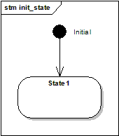 An initial state marks the first active state of a state machine. It has no real existence and neither has the transition originating from it.