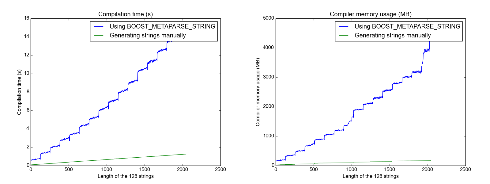 Measurements related to the performance of the BOOST_METAPARSE_STRING macro.