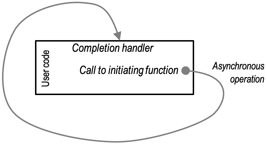 The latter is an important property of asynchronous operations, in that it allows a completion handler to initiate further asynchronous operations without overlapping resource usage. Consider the trivial (and relatively common) case of the same operation being repeated over and over in a chain: