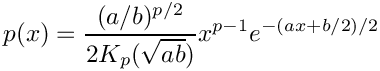 The generalized inverse gaussian distribution is a real-valued distribution with three parameters p, a, and b. It produced values > 0.