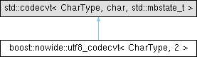 Inheritance diagram for boost::nowide::utf8_codecvt< CharType, 2 >: