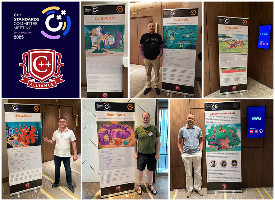 The C++ Alliance, one of the sponsors of the recent WG21 meeting in Sofia, Bulgaria, has brought some Boost posters and merchandise to the event. It's been a nice opportunity to share with the commitee members information on some of the newest Boost libraries and the launch of our new website. On the standardization front, the long-awaited inclusion of reflection in C++26 has been making the rounds across the community.